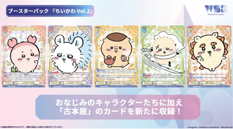・ちいかわ、ハチワレ、うさぎ たちおなじみのキャラクターに加え、新たなキャラクターとして古本屋のカードを収録!